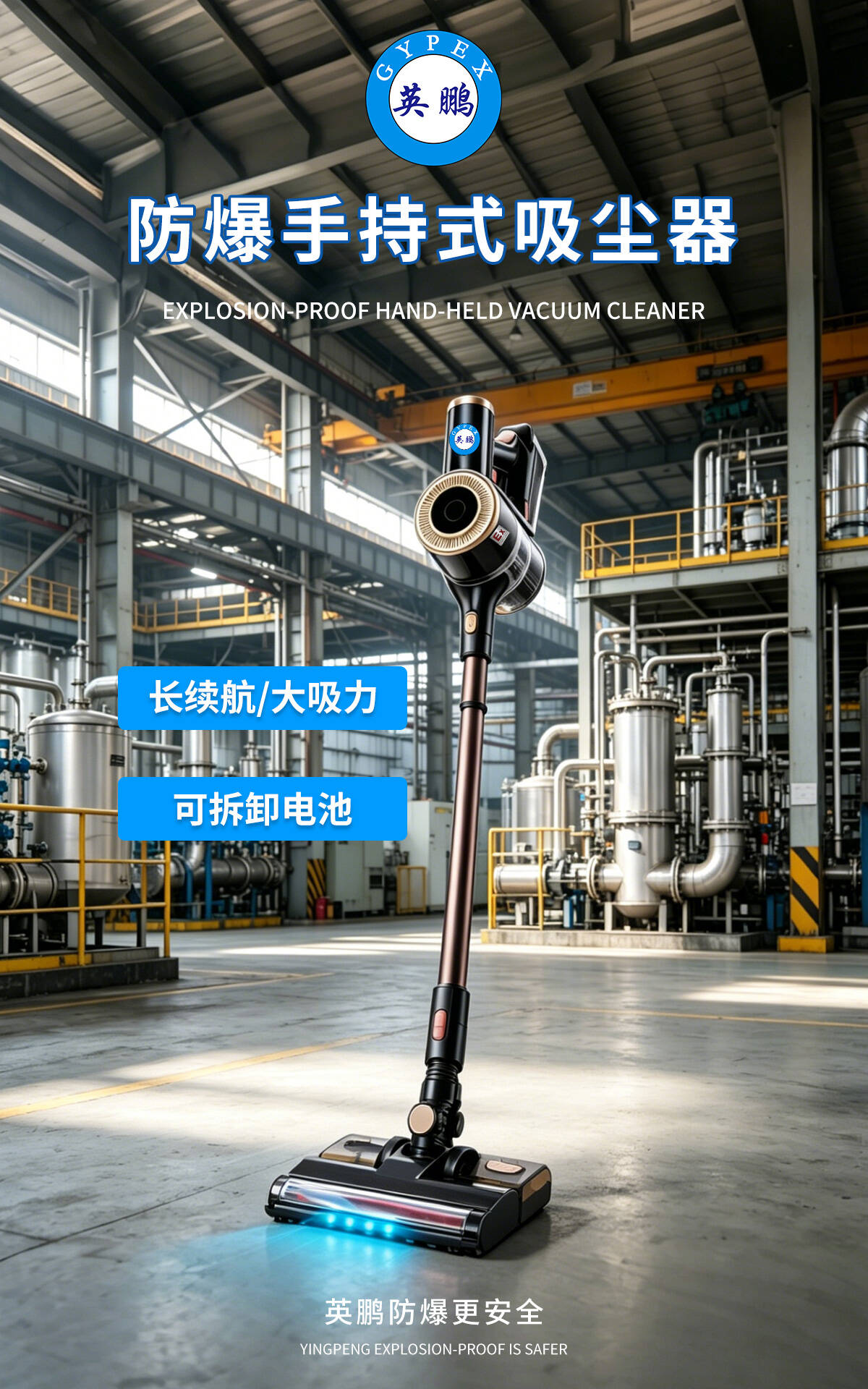 英鹏防爆手持式吸尘器,是专为存在爆炸性危险环境设计的安全性强清洁设备。它采用先进的防爆技术和匠心设计,能在石油、化工、制药、煤炭、燃气等易燃易爆场所安全高效地进行清洁工作,有效清除可燃性粉尘、金属颗粒等危险物质,从而降低爆炸隐患,是危险区域安全生产的必备工具。